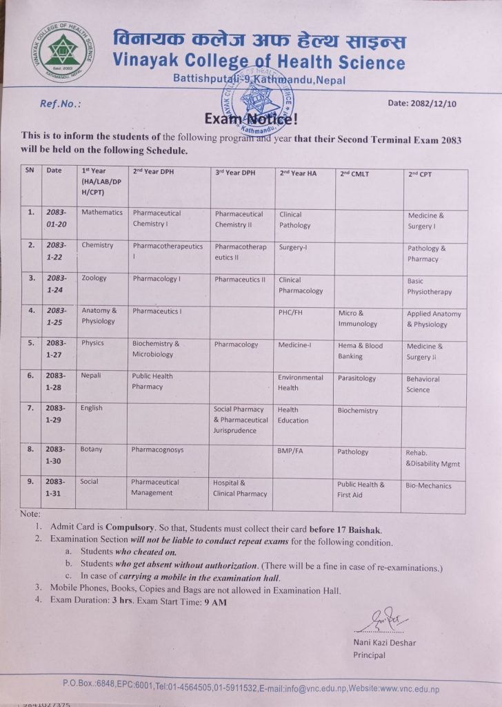 Our students are vital contributors to building a “happy, prosperous, and progressive Nepal,” a vision shared by our nation. They should be physically, intellectually, and emotionally prepared to tackle the global challenges of the 21st century. Technical education encompasses three core elements: knowledge, skills, and attitude or competency, which are essential for developing quality human capital. We are producing quality human resource for the nation with the help of Vinayak family. So that, I would like to extend my heartfelt gratitude to all staff, teachers, parents, students, and well-wishers for their unwavering support and cooperation.