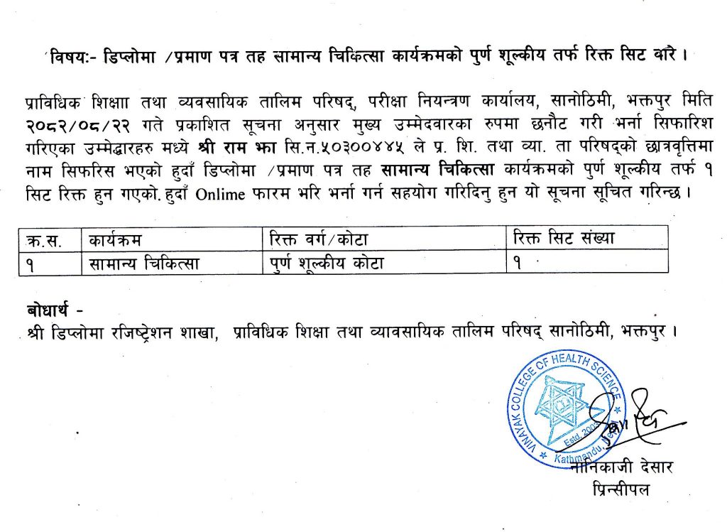 Special Chance Exam Form Submission Notice